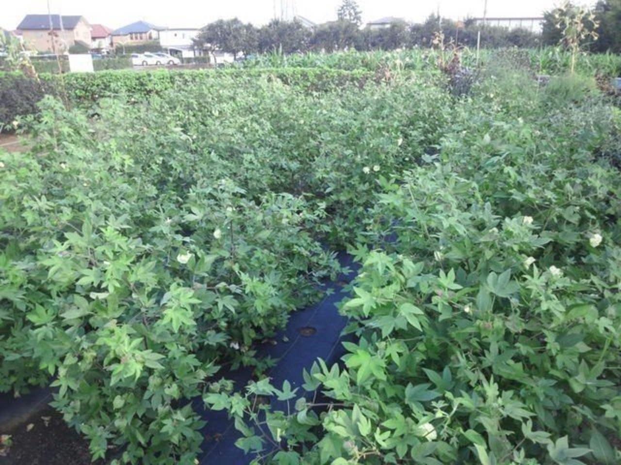 腰ほどの高さにまで育ったら先端の芽を折り取ります(摘芯作業)。そうすることで蕾の多い側枝が増えて、収量も増えます。